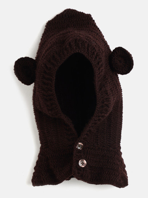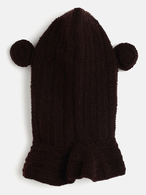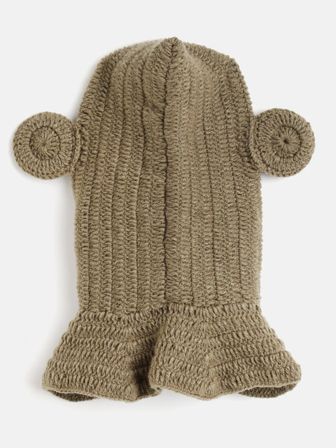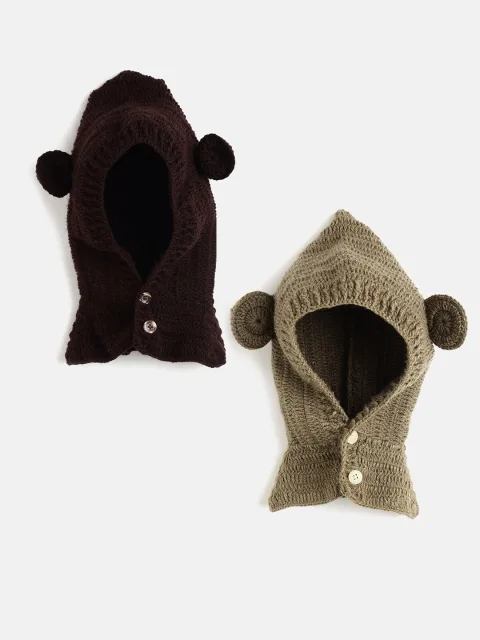 Brown and beige Set of 2 self design beanie