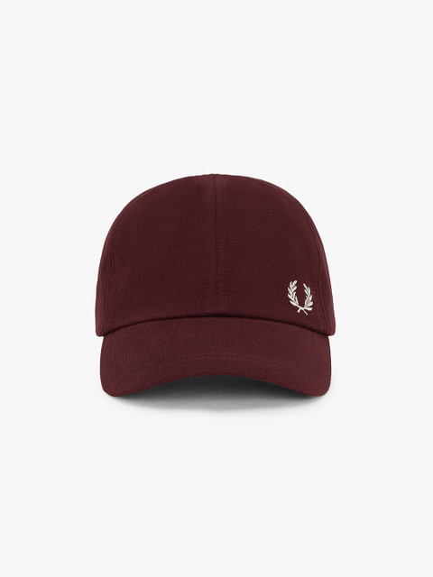 Maroon and white self design baseball cap, has a visor