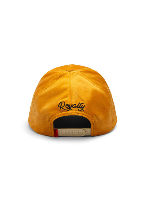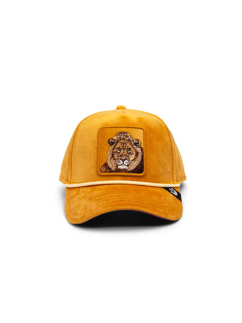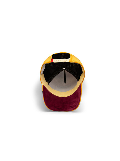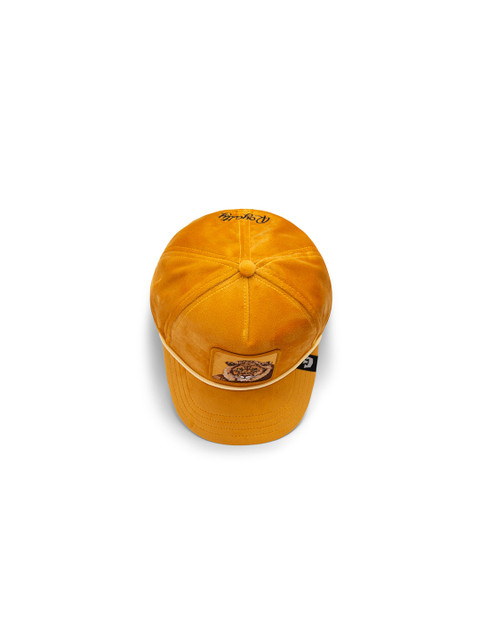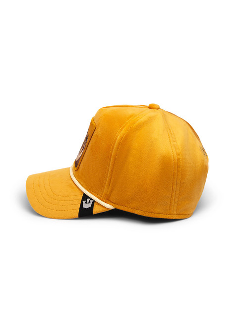 Mustard and brown printed baseball cap, has a visor