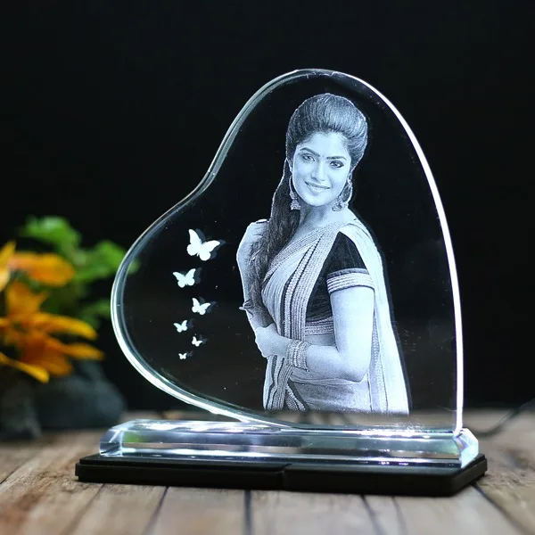 HEART SHAPED B CRYSTAL WITH ENGRAVED PHOTO INSIDE -150X150X12 (MM) WITH SLIM WHITE LIGHT BASE would be a very attractive gift for someone you love.