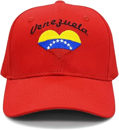 MAPKA Venezuela Flag Heart Baseball Cap, Red Cotton Adjustable Hat, Patriotic Design