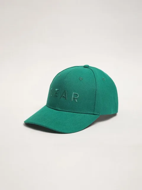 Green embroidered baseball cap, has a visor